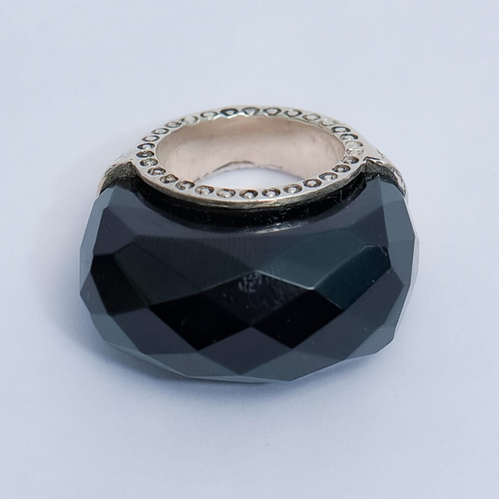 This sterling silver black onyx ring features a polished gemstone set in a sleek silver band. The deep black tones of onyx contrast beautifully with sterling silver, creating a timeless cocktail ring with vintage appeal. Known for strength and grounding energy, onyx adds meaning to this versatile gemstone piece. Perfect for women who love bold jewelry, this ring is handcrafted with care and makes a thoughtful gift or a striking addition to any collection.