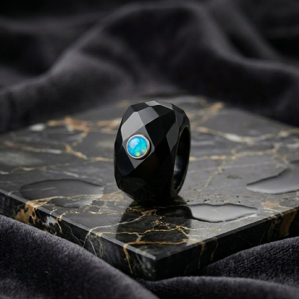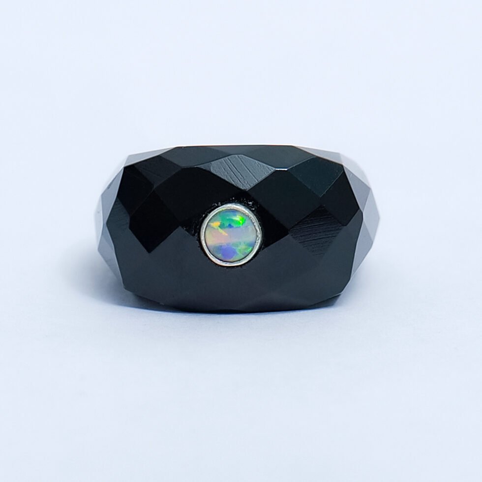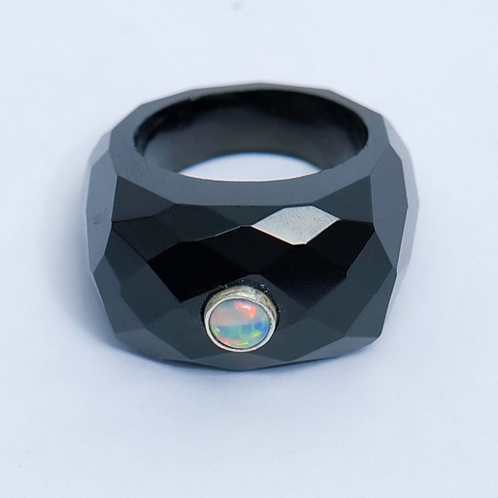 Black Onyx With Opal Handmade 925 Sterling Silver Ring .