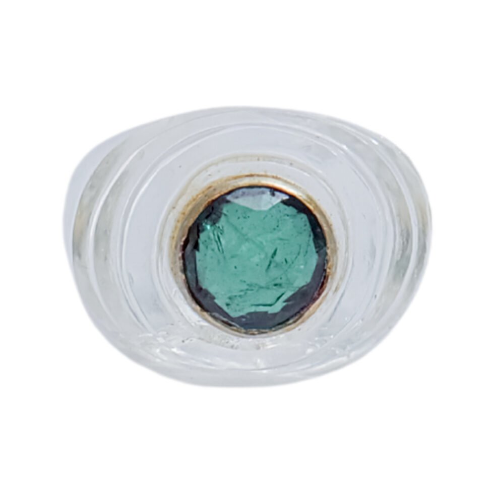 A bold crystal ring featuring a vibrant emerald gemstone set in a sleek bezel setting. The chunky, layered band adds a modern and stylish touch, making it perfect for statement wear. Elegant yet unique, this ring is ideal for everyday styling or special occasions.