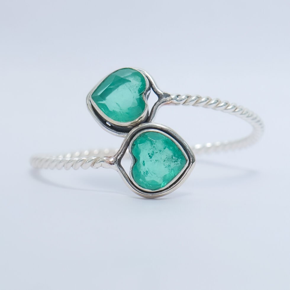 A stunning heart-shaped emerald set in a sleek silver adjustable bangle, symbolizing love and timeless beauty. The rich green gemstone adds a touch of luxury and charm, making it perfect for romantic gifting or elegant everyday wear. Lightweight, graceful, and effortlessly stylish.