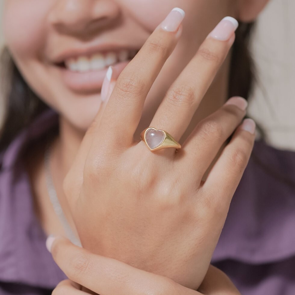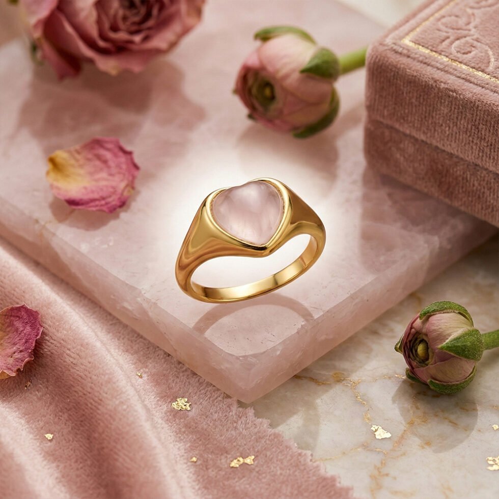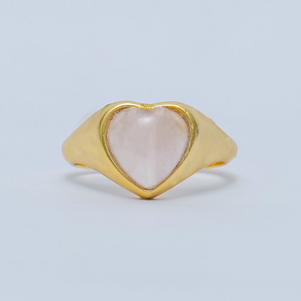 Heart-shaped rose quartz Gold Plated 925 Silver gemstone ring .