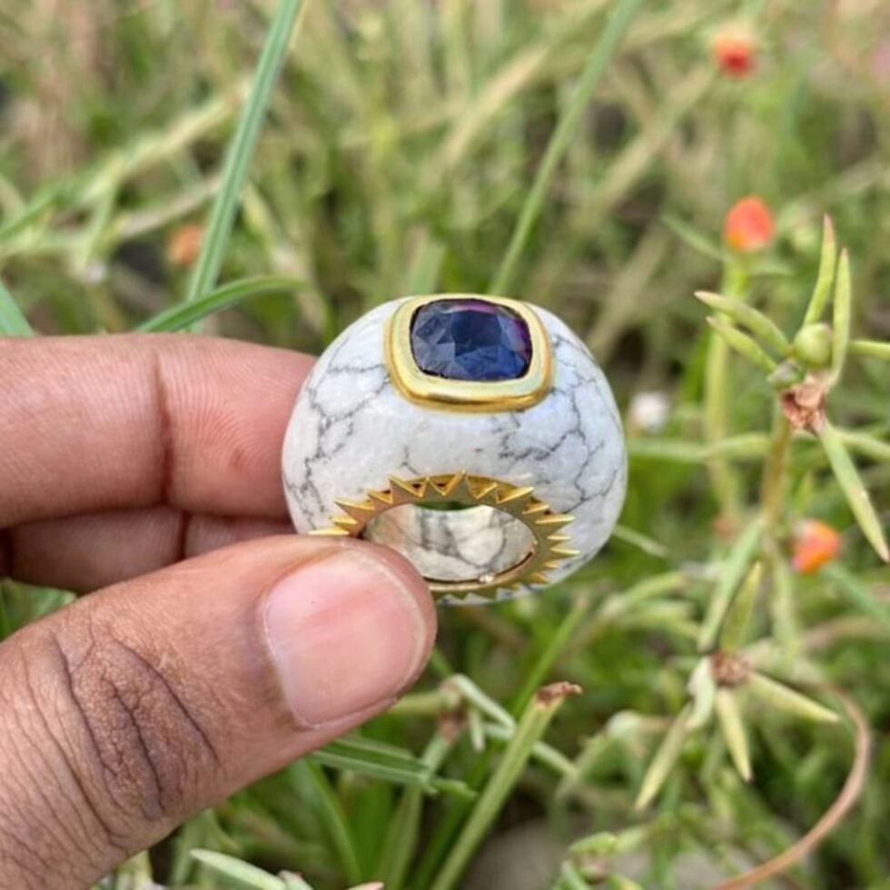 Howlite and Blue Sapphire Statement ring