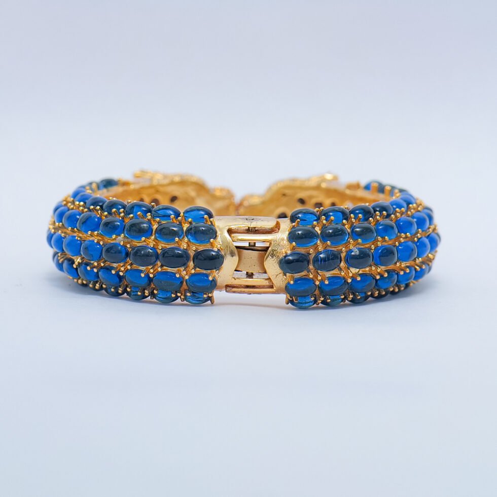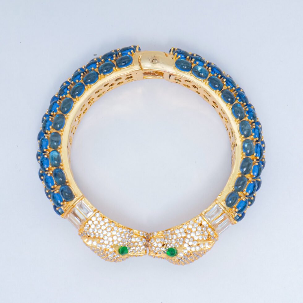 Lapis Lazuli Tiger head bangle : 925 sterling silver gold plated jewelry
