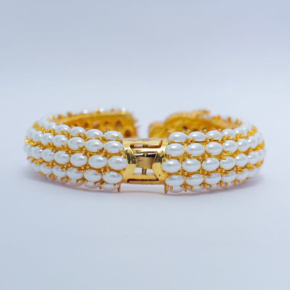Pearl Handmade 925 Sterling Silver Gold Plated Bangle .