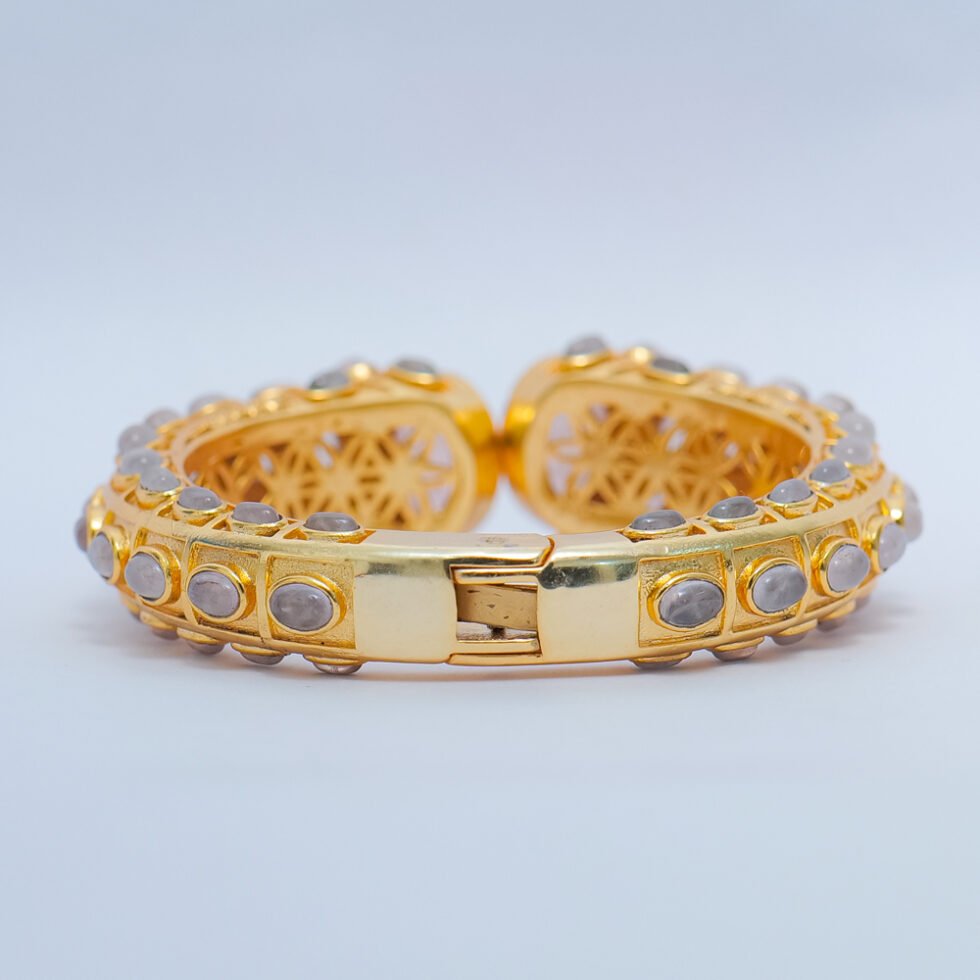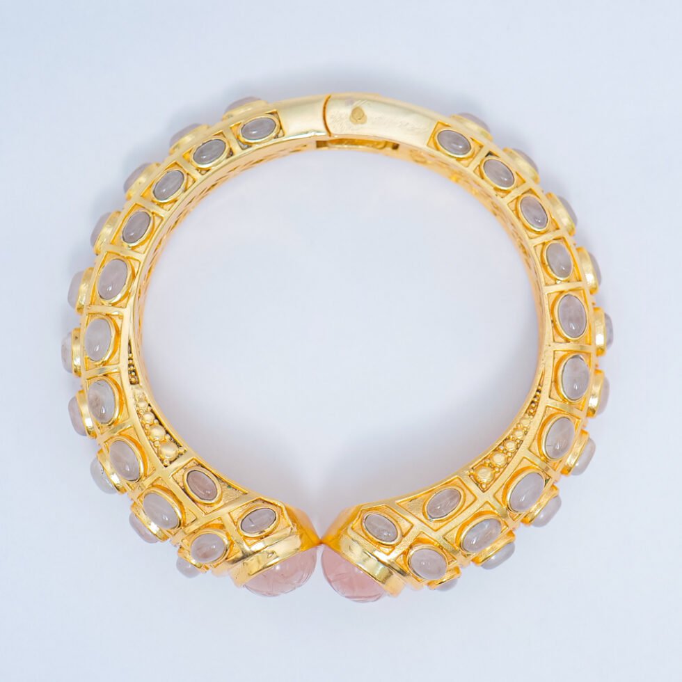 Rose Quartz Handmade 925 Sterling Gold Plated Bangle .