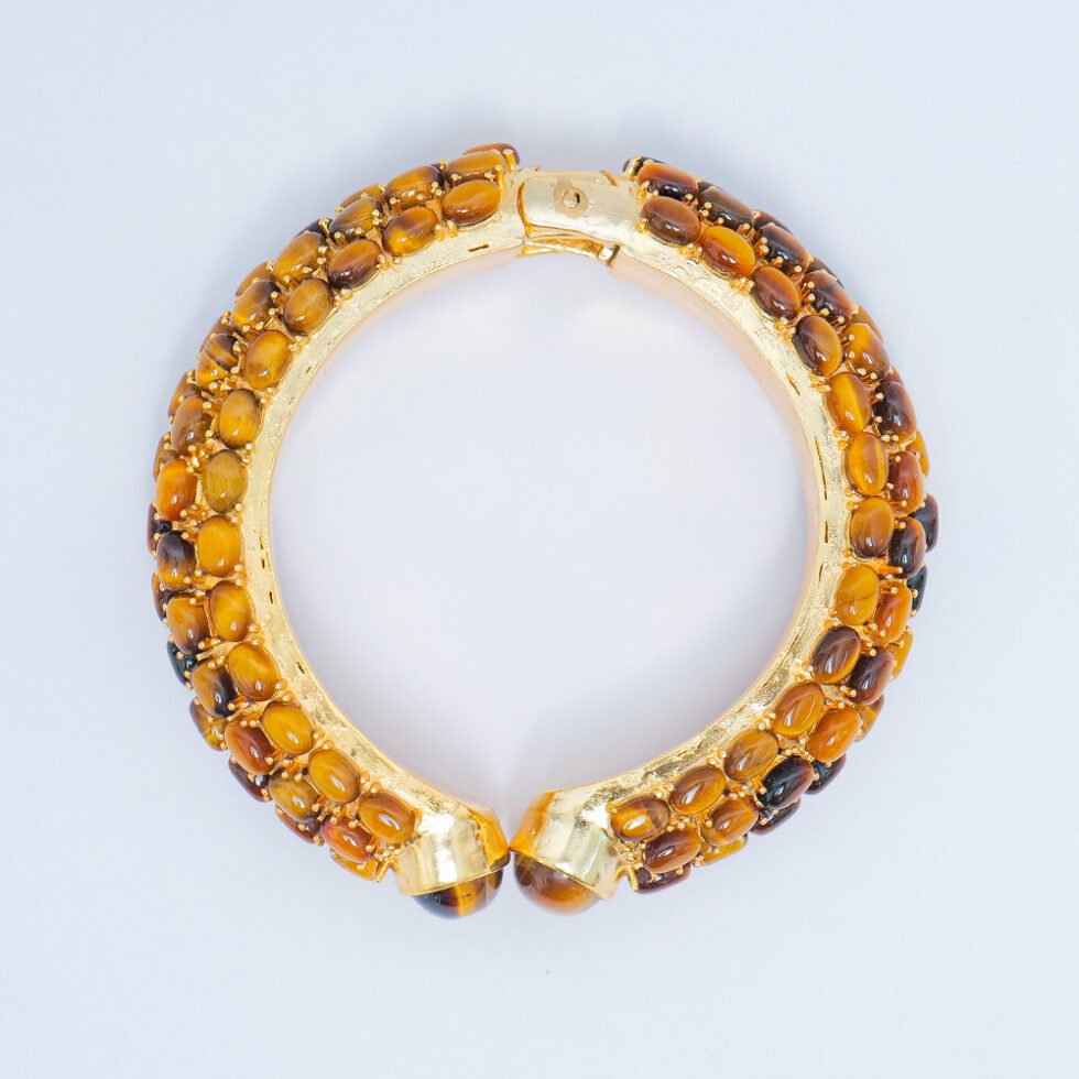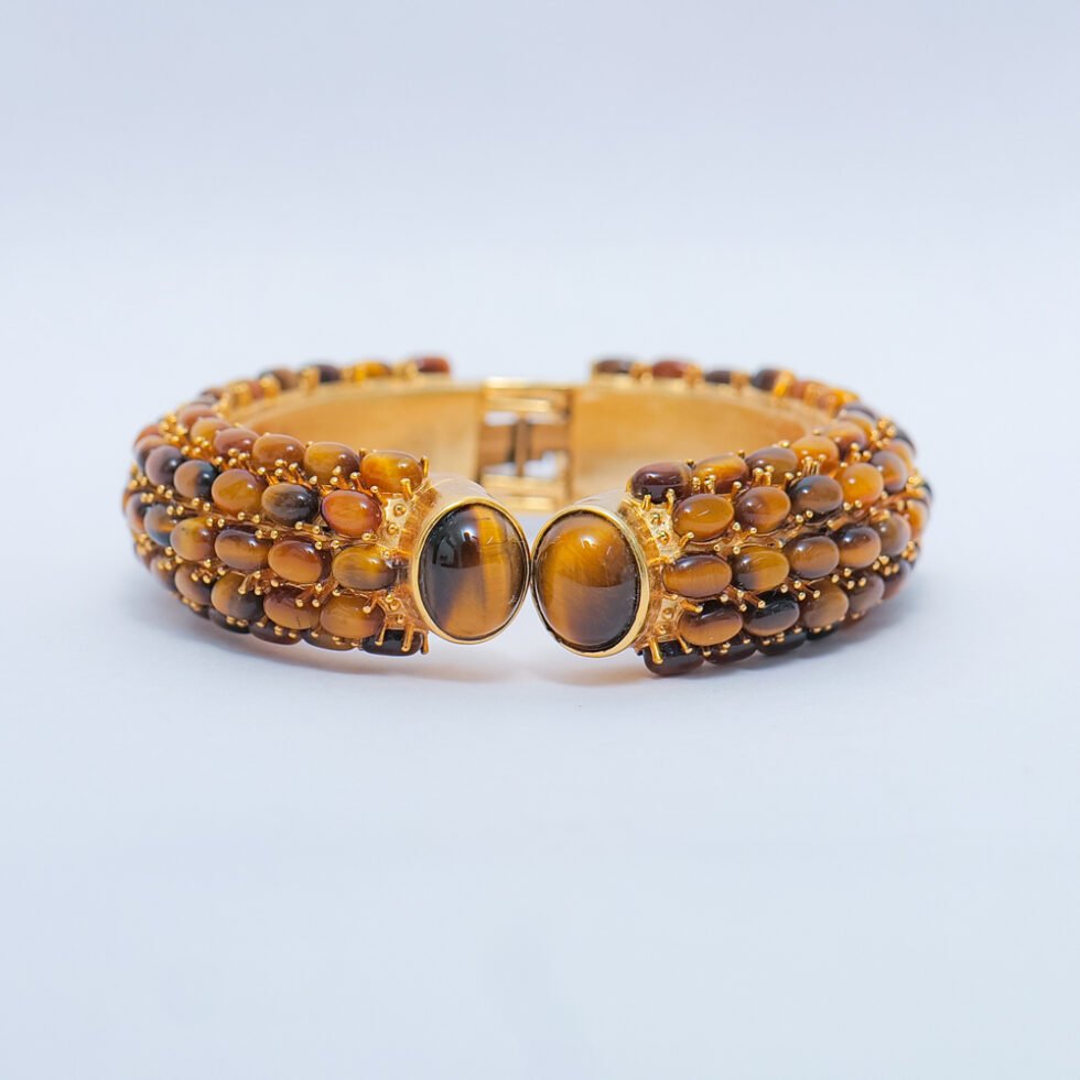 Tiger eye Gold Plated Bangle : 925 sterling silver jewelry