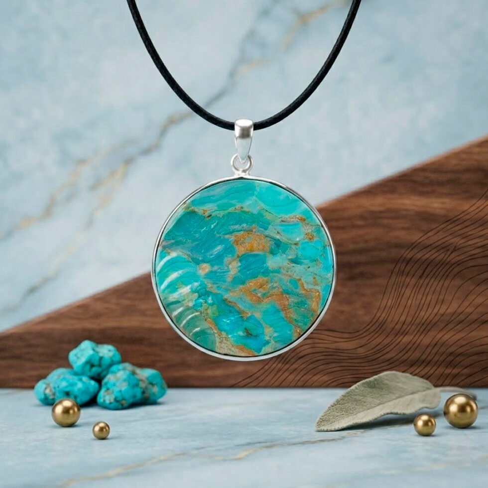 Turquoise Round Pendant Necklace : 925 sterling silver jewelry